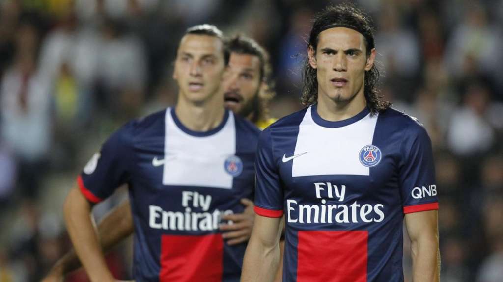 Zlatan Ibrahimovic detrás de Edinson Cavani. FOTO: ARCHIVO