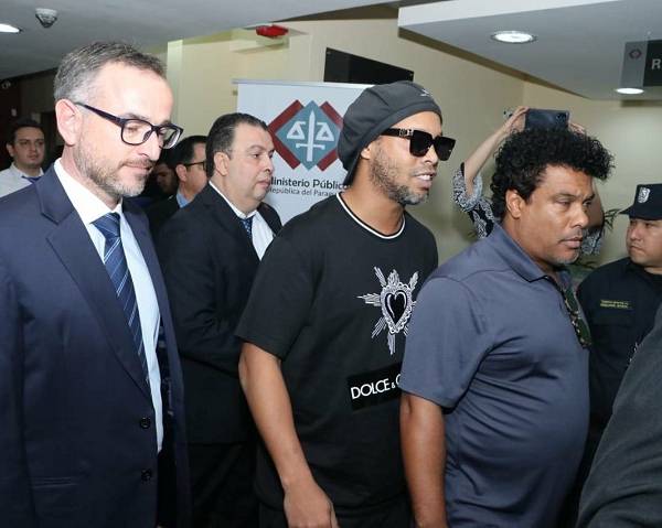 Ronaldinho había abandonado el Palacio de Justicia a las 20H15 locales (23H15 GMT) y apareció a las 22H00 locales ingresando en vehículo cerrado al cuartel de la Agrupación de la Policía.