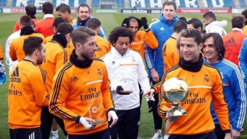 Todavía desbordado de emoción, por su reciente consagración como el mejor jugador del mundo, Cristiano Ronaldo apareció en la práctica matutina del Real Madrid con una sonrisa en su rostro y el preciado Balón de Oro en sus manos. Lejos de los egoísmos y actitudes soberbias de otros tiempos, el delantero luso buscó agradecer la conquista del premio y se lo "ofreció" a sus compañeros antes de iniciar con los trabajos.