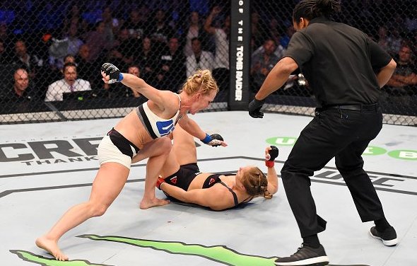 Holm provocó una de las derrotas más sorprendentes del Ultimate Fighting Championship cuando noqueó en el segundo asalto a la hasta entonces invicta Rousey para proclamarse campeona del peso gallo el domingo.