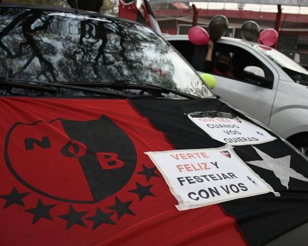 Los simpatizantes del conjunto rojinegro se juntaron, mayormente a borde de automóviles para evitar el contagio del coronavirus, en el estadio Marcelo Bielsa y fueron en caravana hasta el Monumento a la Bandera, que está a unos cuatro kilómetros.