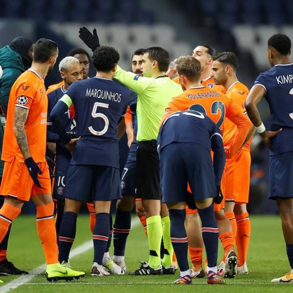 El duelo entre el PSG y el Estambul Basaksehir se detuvo por insulto del cuarto árbitro.