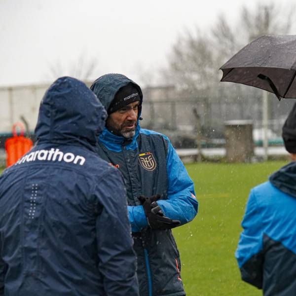 El entrenador de la selección de Ecuador, Félix Sánchez Bas, dirigió su primer entrenamiento en el complejo del equipo San Lorenzo de Almagro, donde la lluvia y el mal tiempo fueron protagonistas en esta sesión que tuvo a nueve jugadores de la Tri.