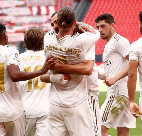 Sergio Ramos, transformando con autoridad un penal sancionado a instancias del VAR por pisotón de Dani García a Marcelo, permitió al Real Madrid derrotar al Athletic Club en San Mamés (0-1) y acerca al título liguero al conjunto blanco.