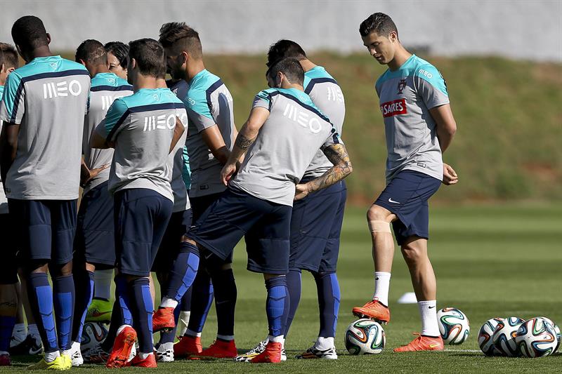 La selección de Portugal entrena para el partido contra Estados Unidos tras la derrota 4-1 ante Alemania. Foto: EFE. -