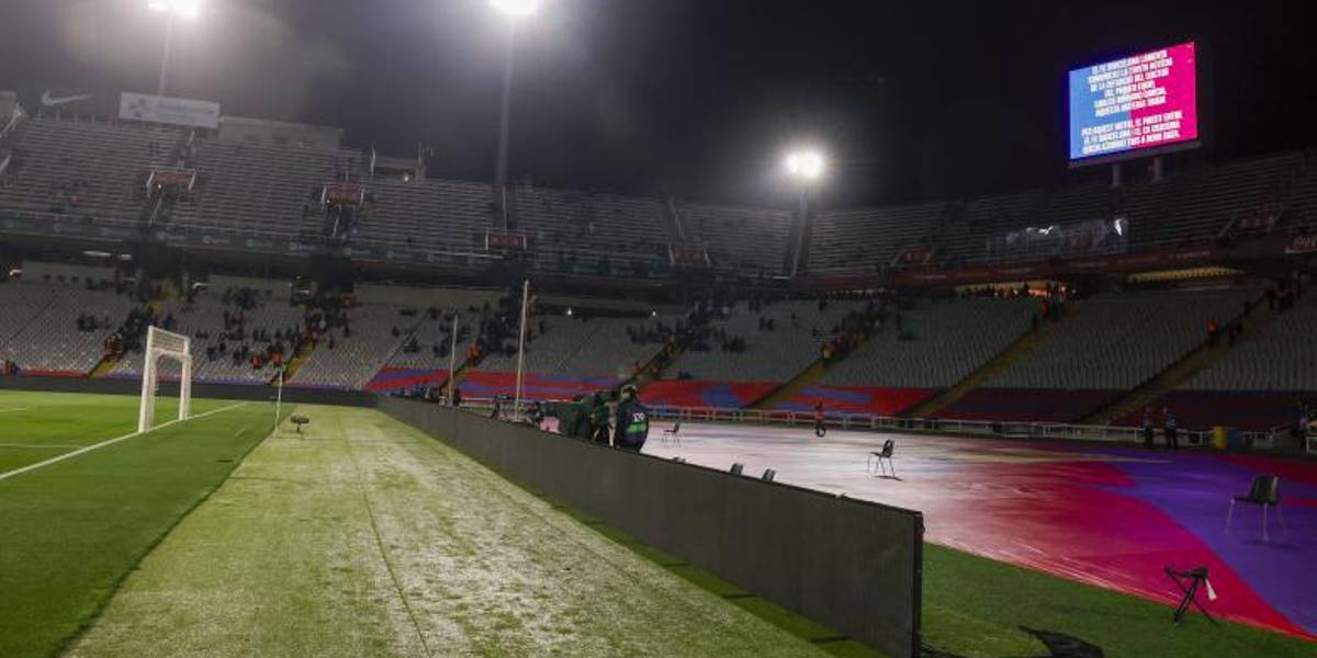 18 minutos antes del inicio del encuentro, el club azulgrana ha anunciado por la megafonía del recinto ubicado en Montjuïc la suspensión del duelo.