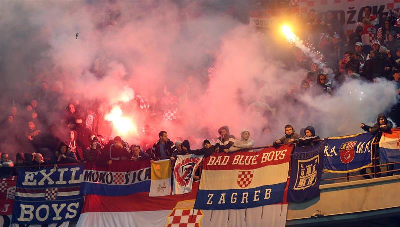 Este es el momento que los hinchas de Croacia lanzaron bengalas a la cancha (Foto: EFE)