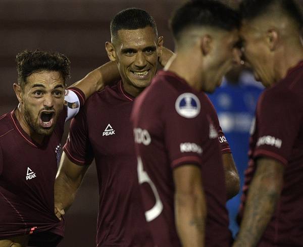 Jugadores de Lanús celebran uno de los tantos. Foto: Sudamericana.