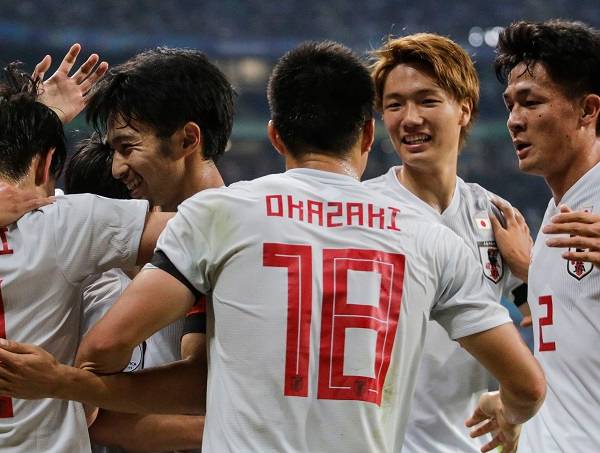 Japón celebra uno de sus goles ante Uruguay.