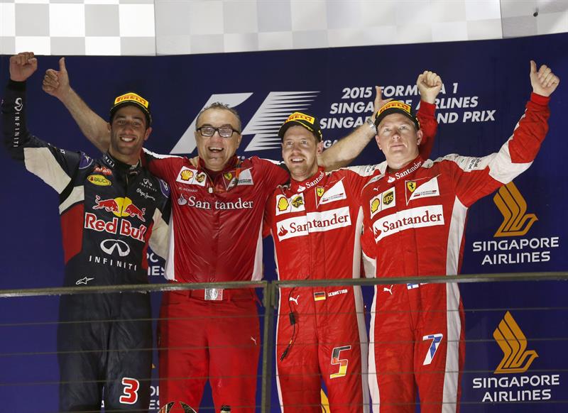 Vettel logró su tercera victoria del año, la cuarta en Singapur. tras ganar en el circuito de Marina Bay por delante del australiano Daniel Ricciardo (Red Bull) y de su compañero en Ferrari, el finlandés Kimi Raikkonen, que fue tercero.
