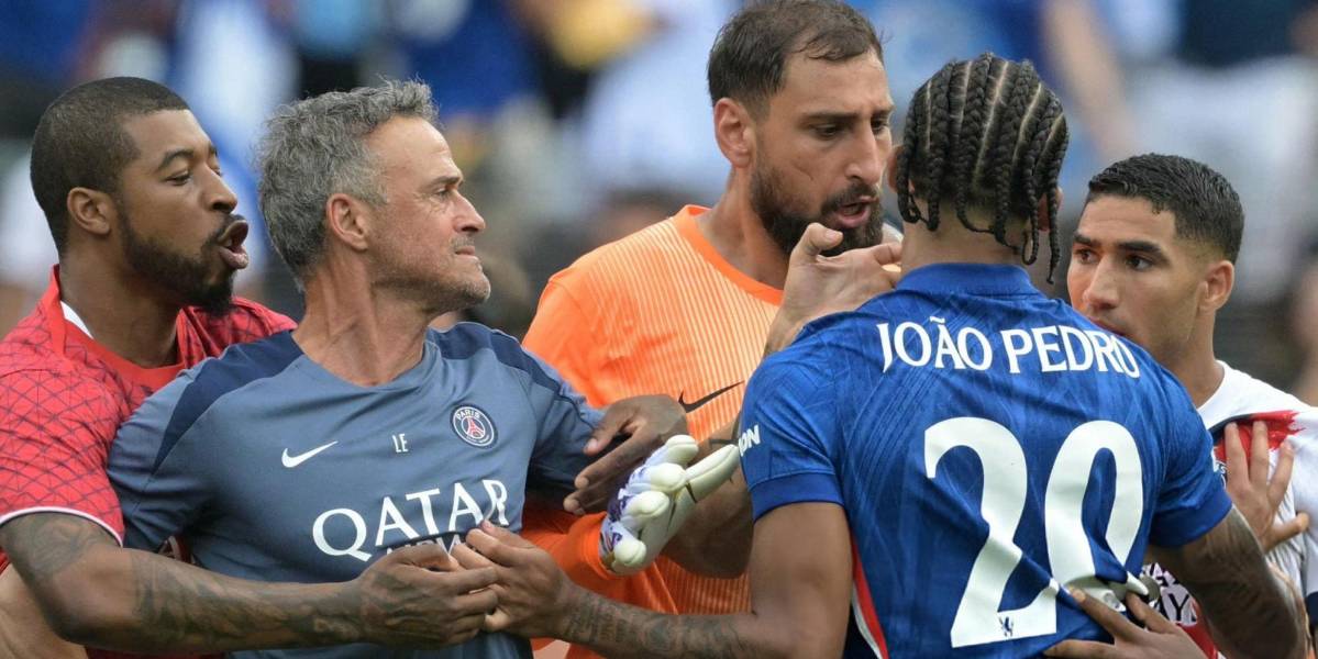 Después del pitazo final, en medio del festejo del Chelsea, el director técnico del PSG, Luis Enrique, se cruzó con Joao Pedro y tuvieron una discusión que terminó en las manos.