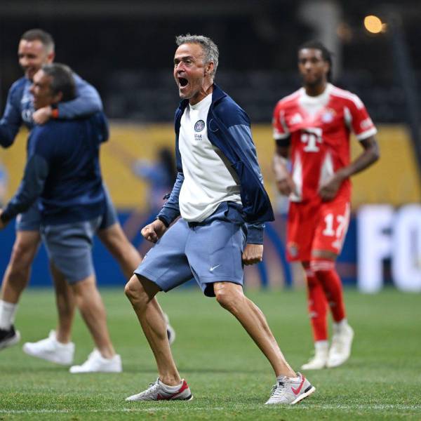 El entrenador del PSG, Luis Enrique, celebra la victoria de su equipo contra el Bayern Múnich en el Mundial de Clubes( )