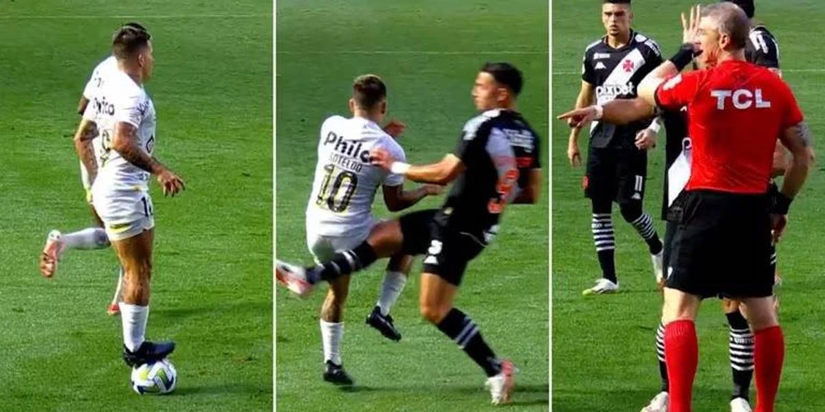 Ante eso, la banca de suplentes del Santos que se encontraba al borde de la jugada, salió a increpar al delantero paraguayo del Vasco.