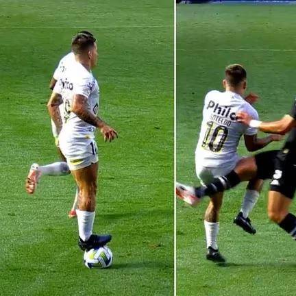 Yeferson Soteldo realizó una jugada provocativa, parándose sobre la pelota y generando que uno de sus rivales, Carlos Ferreira, vaya a tratar de patearlo.