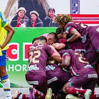 Jugadores de Mushuc Runa celebrando un gol.( )