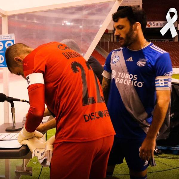 Los capitanes de Emelec (Sebastián Rodríguez) y Liga de Quito (Adrián Gabbarini) firman un acta de asistencia al partido del día domingo ( )
