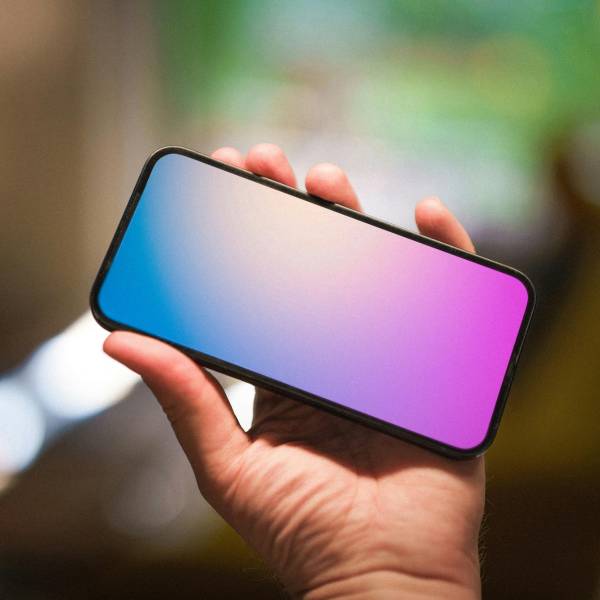 Imagen de una persona sosteniendo horizontalmente un teléfono.( )