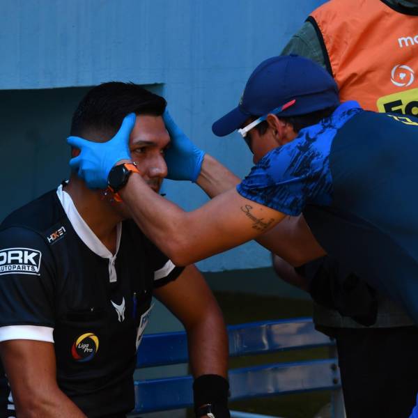 Una valla de Liga Pro golpeó al árbitro Bryan Loayza en su cabeza