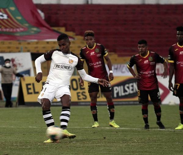 Fidel Martínez de BSC cobra un penal. Foto: API.