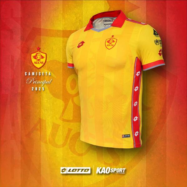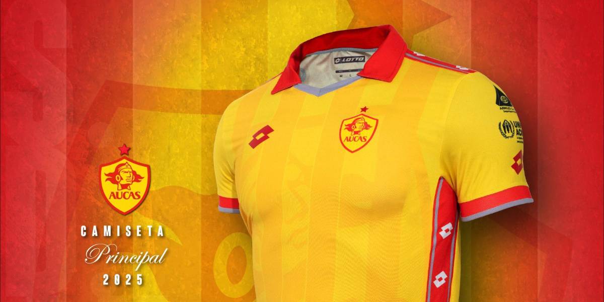 La camiseta principal de Aucas para este año mantiene su color tradicional amarillo con detalles rojos que le da un toque de elegancia.