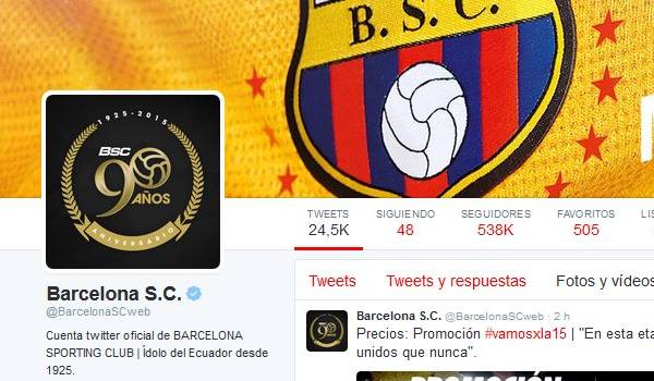 Barcelona Sporting Club se convirtió en el primer equipo ecuatoriano en tener una cuenta verificada en la red social twitter.