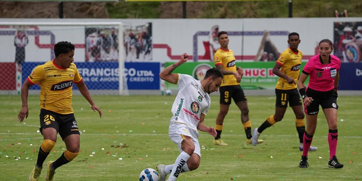 El cotejo no arrancó de manera cómoda para Barcelona, que sufrió rápidamente dos goles de Mushuc Runa. Jimmy Evans y Bagner Delgado inclinaron la balanza a favor de los ambateños antes de la media hora de juego. Sin embargo, antes del descanso Rodríguez descontó desde el punto penal.
