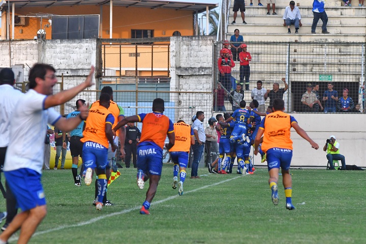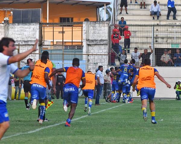 Jugadores de Delfín celebran uno de sus goles. Foto: Twitter El Canal del Fútbol.