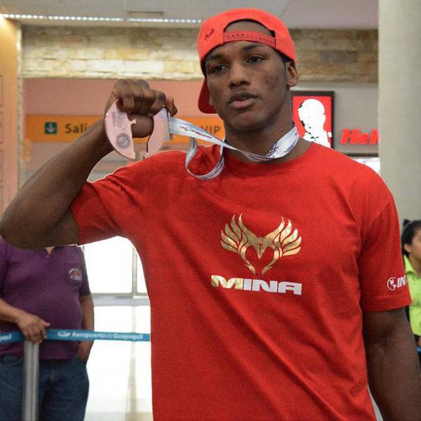 El boxeador ecuatoriano Carlos Mina arribó al país y mostró la medalla que ganó en el mundial.