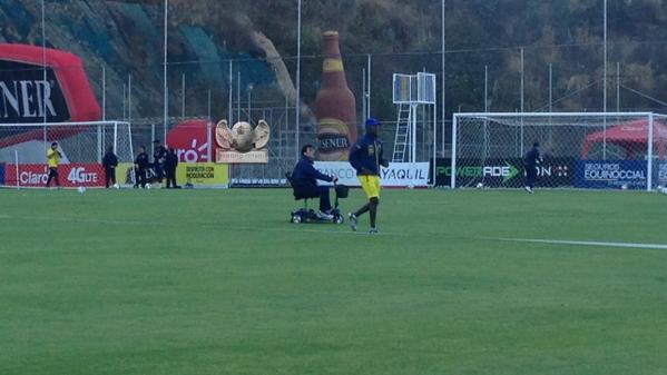 El técnico de Ecuador, Gustavo Quinteros, sufrió una lesión en el tendón de Aquiles por lo que tiene que valerse de un carrito para dirigir los entrenamientos del combinado “tricolor”.