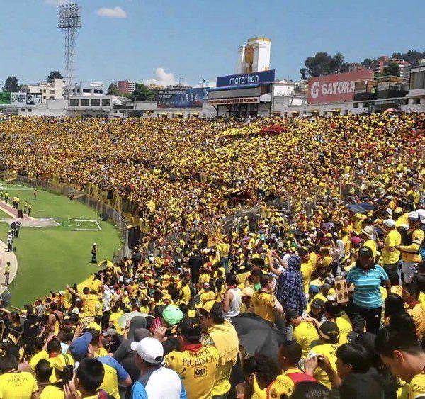Hinchas de Barcelona en el estadio Olímpico Atahualpa, en Quito.