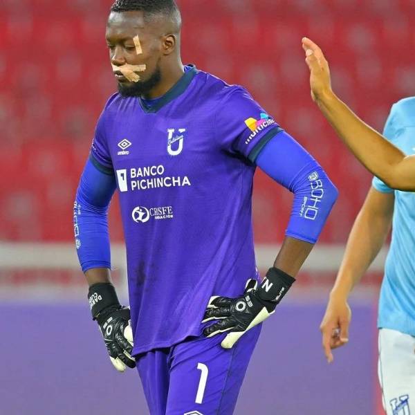 Pese a que tuvo opciones de salir del campo por sus fuertes heridas en el rostro, el arquero Cuero decidió continuar en el resto del primer tiempo, pero tuvo que hacerlo con vendas.