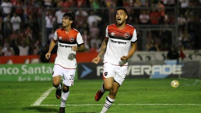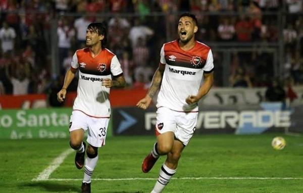 Francisco Fydriszewski (derecha) celebra un gol con Newell's.