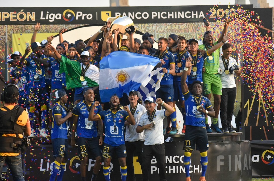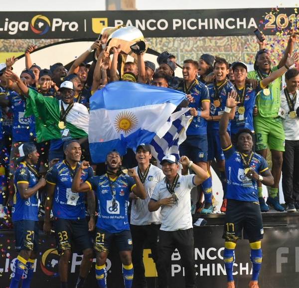 Jugadores de Delfín SC, celebrando el título.