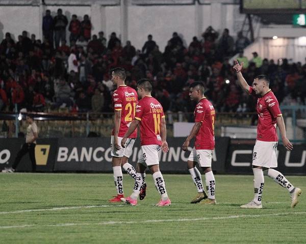 Jugadores de Deportivo Cuenca festejan ante Fuerza Amarilla. Foto: API.