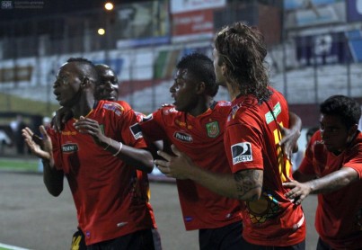 CUENCA.- Los jugadores del Deportivo Cuenca en el festeho por la apertura del marcador. Foto: API.