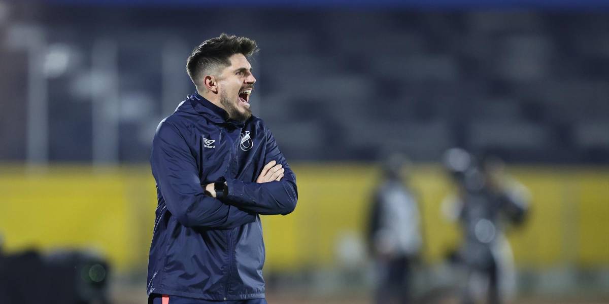 El entrenador de Universidad Católica, Diego Martínez, reacciona en un partido de la Copa Sudamericana entre Universidad Católica y Defensa y Justicia en el estadio Olímpico Atahualpa en Quito (Ecuador). ( )