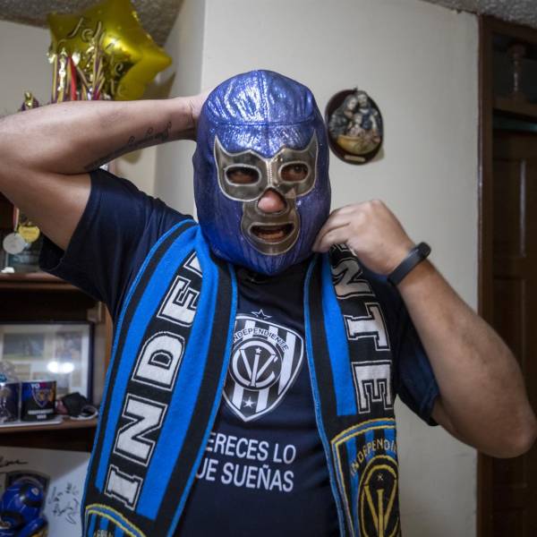 Detrás de esa máscara de lucha libre mexicana está Edgar Calderón, la identidad oculta del 'Gigante', que atesora una de las historias de mayor lealtad hacia Independiente, el equipo al que ha acompañado siempre desde que jugaba en la segunda división.