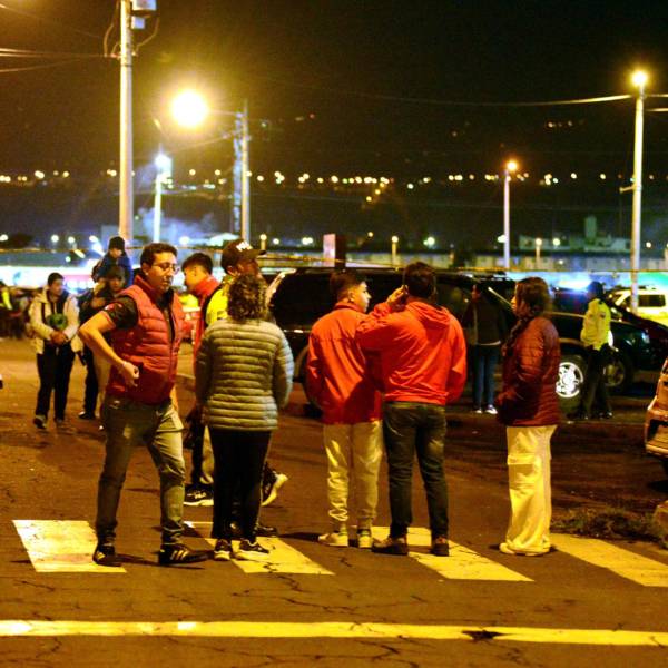 Los aficionados de El Nacional afuera del estadio La Cocha por amenaza de bomba( )