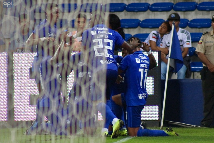 Emelec celebra uno de sus tantos ante Sporting Cristal. Foto: API