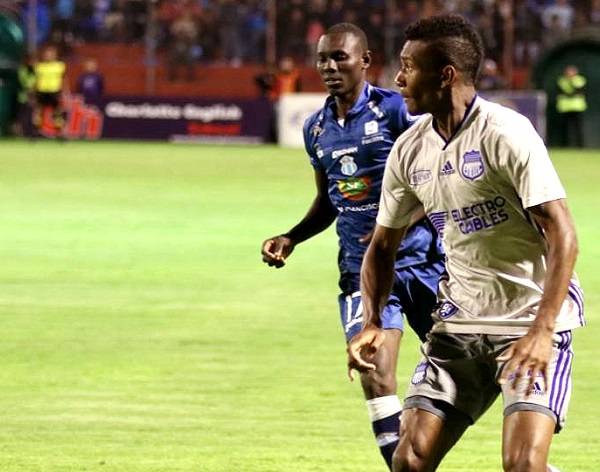 Bryan Cabezas en un partido de Emelec ante Macará.