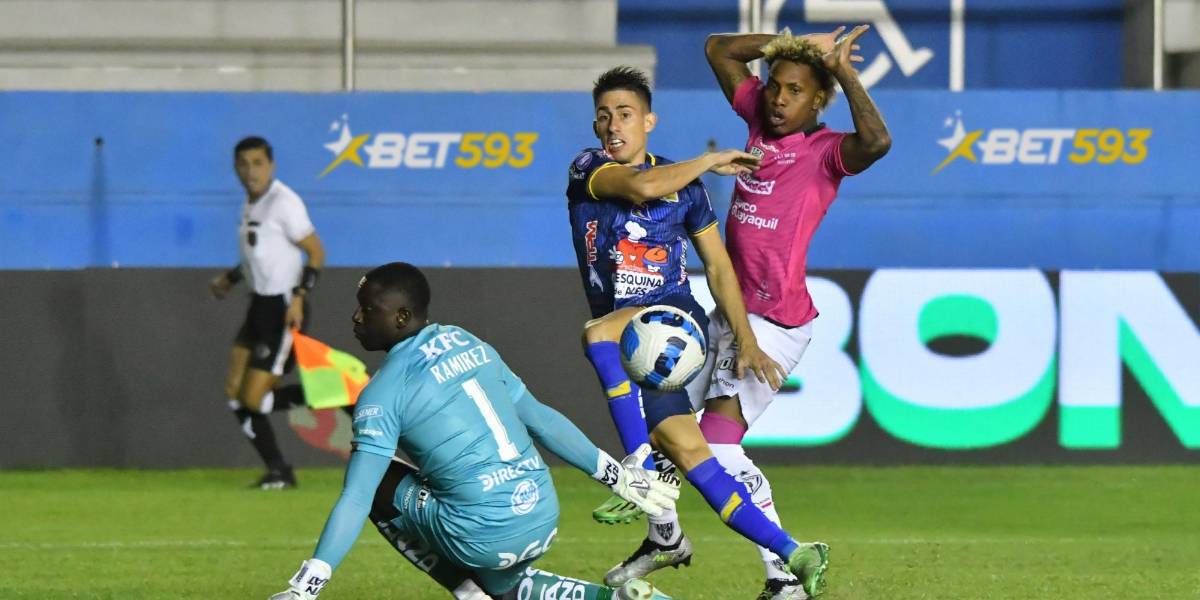 Se perdieron tres minutos en reclamos de Independiente que no cambiaron la decisión del juez Roberto Sánchez. Brian Oyola pateó el penal, fuerte, abajo y al medio: 1-0 para Delfín.