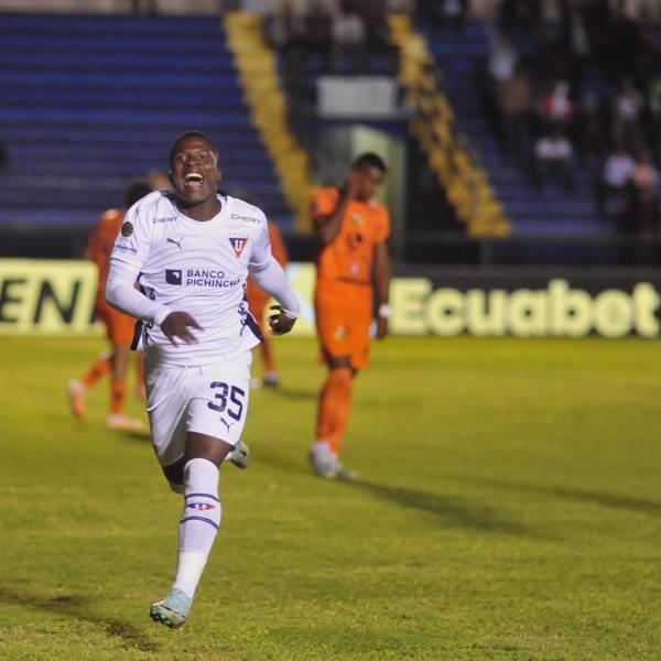 Jairon Charcopa, de Liga de Quito, anotó un doblete en la goleada de su equipo en Loja. ( )