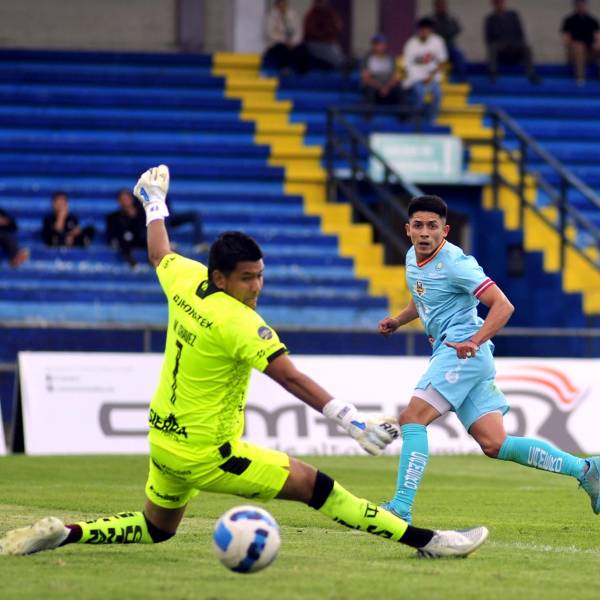 Lautaro Disanto, de Libertad, vence al arquero Walter Chávez, de Técnico Universitario.( )