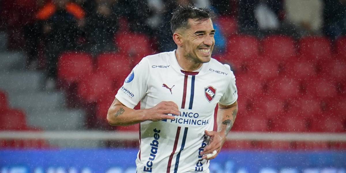 Lisandro Alzugaray celebra un gol con Liga de Quito contra Deportivo Cuenca por los cuartos de final de la Copa Ecuador ( )