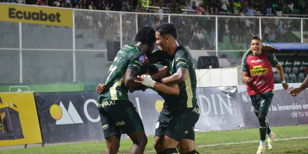 Los jugadores de Orense SC celebran el gol de Sergio Vásquez contra Universidad Católica por la fecha tres del hexagonal principal de la LigaPro( )