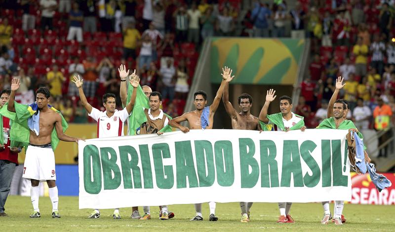 Tahití, el campeón oceánico, a pesar de recibir 24 goles y de anotar apenas uno, cautivó a la hinchada brasileña, que siempre le apoyó y no dejó de darle aliento, incluso con las abultadas goleadas.