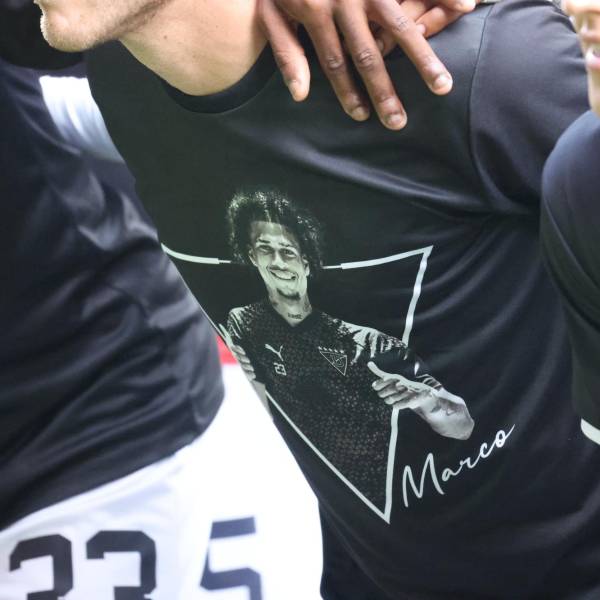 Los jugadores de LDUQ saltaron al campo de juego con una camiseta negro y la imagen de su colega fallecido manteniendo vivo su legado.