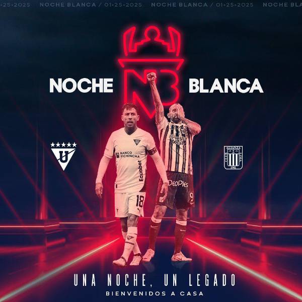 La Noche Blanca, fiesta de Liga de Quito, será el sábado 25 de enero de 2025. Liga de Quito se enfrentará a Alianza Lima en el Rodrigo Paz Delgado con la presencia de invitados especiales.