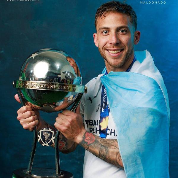 Ezequiel Piovi, jugador de Liga de Quito, posa con la Copa Sudamericana( )
