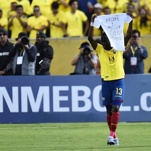 Felipe Caicedo expresó en redes sociales su agradecimiento a Enner Valencia por el mensaje que mostró en una camiseta blanca tras marcar el gol de apertura del marcador frente a Paraguay.